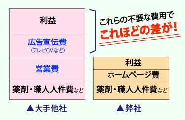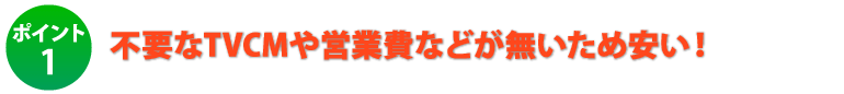 TVCMなどは一切行わず、ホームページからのお問い合わせのみに対応することで、出来る限り広告費を抑えております。従って営業スタッフがおりませんので、営業費用も一切かかりません。