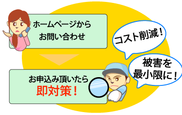 シロアリねっとではお客様からお問い合わせ頂いてからの素早い対策を心がけております。これには2つの理由があります。